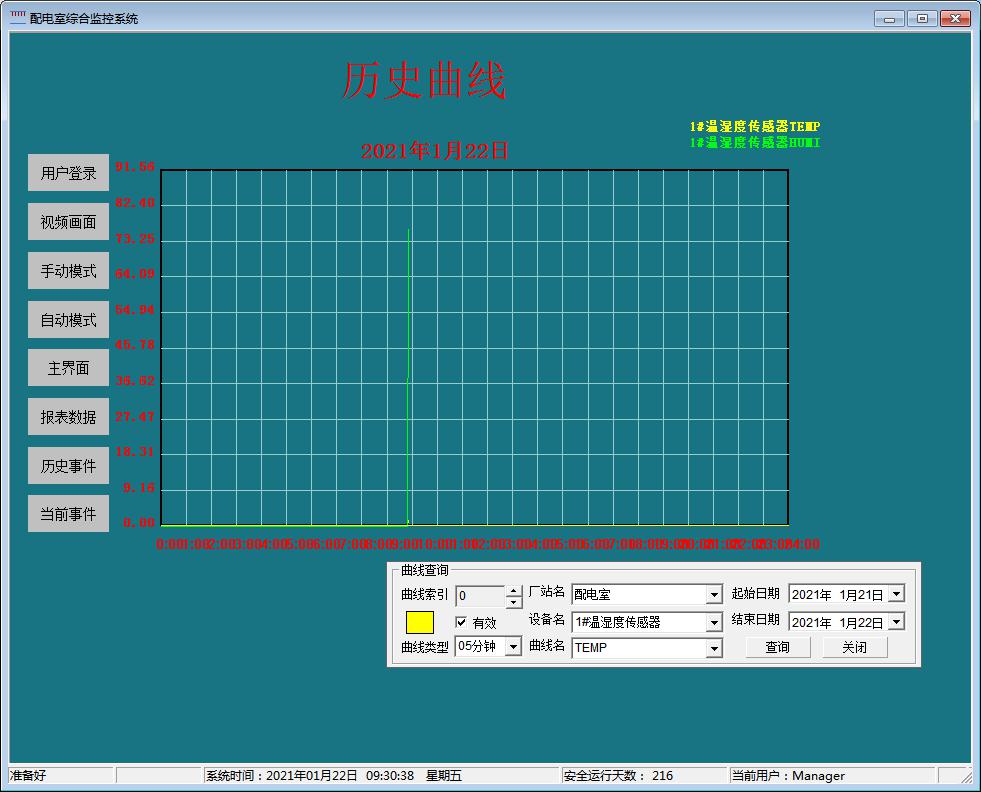 在曲線查詢界面,可以直接查看遙測(cè)參量曲線,包括溫度、濕度、水位、有害氣體濃度、電壓、電流等曲線。