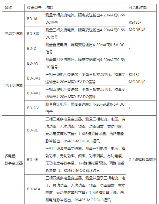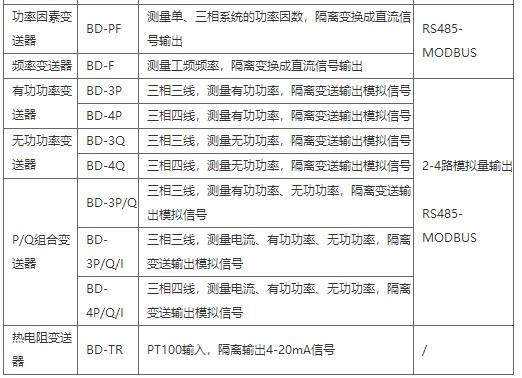 BD系列電力變送器是一種將電網中的電流、電壓、頻率、功率、功率因數等電參量,經隔離變送成線性的直流模擬信號或數字信號的裝置