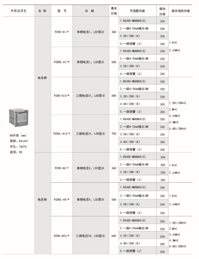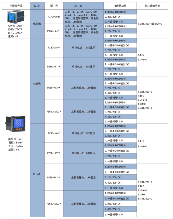 該系列儀表采用交流采樣技術,能分別測量電網中的電流、電壓、功率、功率因數和電能等參數。可帶RS485通訊接口、模擬量數據轉換、開關量輸入/輸出等功能,實現電力參數、電氣元件工作狀態的遠程傳輸,便于后臺監控系統集中檢測。