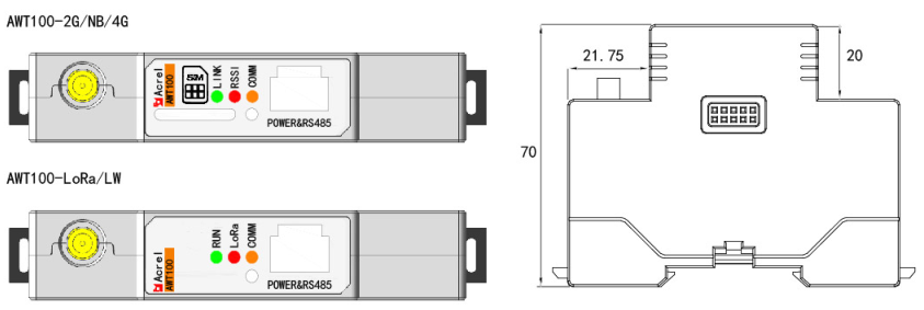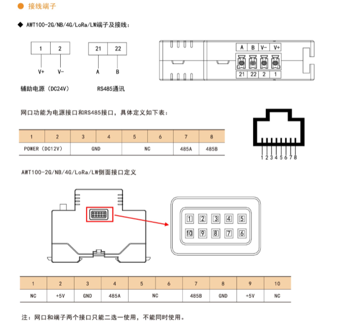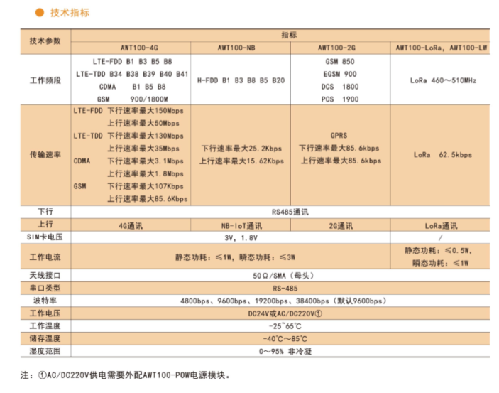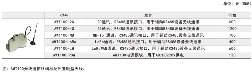 注:①AWT100-2G/NB/4G無線通信終端能通過安科瑞平臺協議與安科瑞服務器通訊。