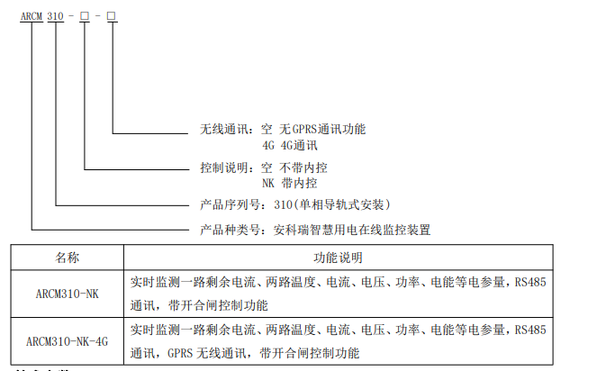 ARCM310 智慧用電在線監控裝置(以下簡稱裝置)是針對 0.4kV 以下的 TT、TN 系統設計的智能電力裝置, 具有單相交流電測量、漏電監測、溫度監測、內控開合閘以及 RS485 通訊或 GPRS 無線通訊功能,通過對配電 回路的剩余電流、導線溫度等火災危險參數實施監控和管理。