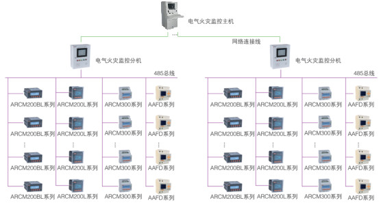 Acrel-6000電氣火災(zāi)監(jiān)控系統(tǒng)采用Acrel-6000/Q電氣火災(zāi)監(jiān)控設(shè)備(主機(jī))+Acrel-6000/B電氣火災(zāi)監(jiān)控設(shè)備(分機(jī))+電氣火災(zāi)監(jiān)控探測(cè)器三層結(jié)構(gòu)組網(wǎng)模式,適用范圍比較廣,滿足各種環(huán)境的現(xiàn)場(chǎng),便于區(qū)域化管理,探測(cè)器與監(jiān)控設(shè)備之間采用RS-485通訊,監(jiān)控設(shè)備與分機(jī)之間采用以太網(wǎng)通訊,滿足了通訊實(shí)時(shí)性高的要求。