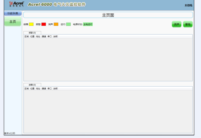 包含“登陸”、“消音”、“運(yùn)行監(jiān)視界面” 及“系統(tǒng)狀態(tài)欄”四部分,可以分別通過(guò)點(diǎn)擊系統(tǒng)主界面上方的菜單欄或快速啟動(dòng)欄內(nèi)按鈕進(jìn)入各相關(guān)功能界面。