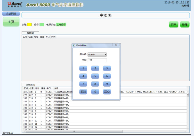 選擇用戶名并輸入正確的密碼后,系統(tǒng)狀態(tài)欄會(huì)顯示當(dāng)前的登錄用戶。本軟件針對(duì)的任意遠(yuǎn)控操作均需權(quán)限登錄后方可操 作,即防止無(wú)關(guān)人員誤操作。