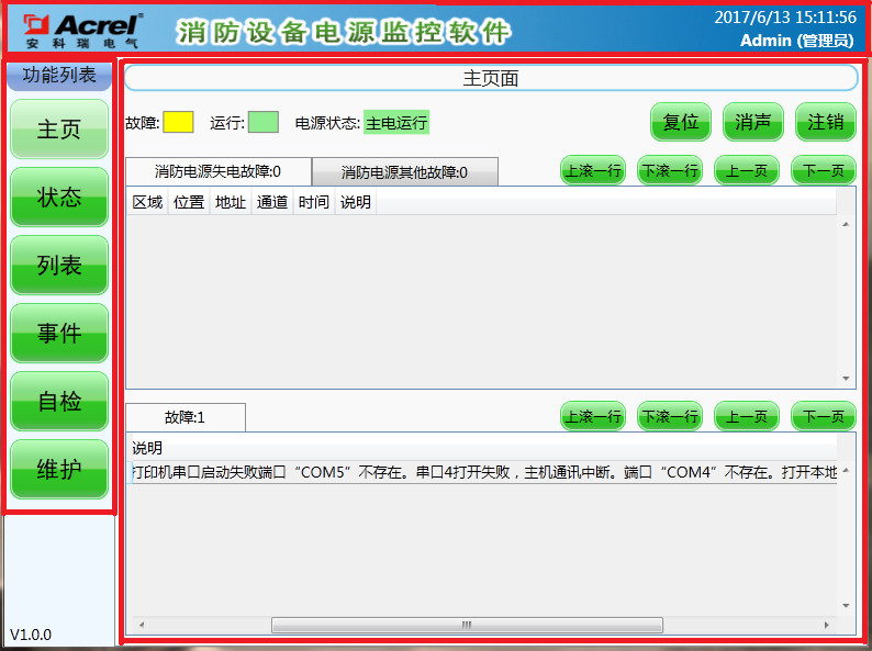 包含“軟件標題區”、“功能列表區”、“頁面顯示區”三部分,可以通過點擊“功能列表區”內按鈕進入各相關功能界面。