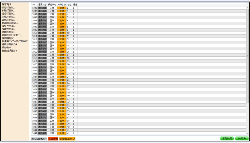 該檢測功能為“管理員”和“操作員”方可進行的操作功能,主要用于設備自檢和對監控系統柜體面板指示燈的手動檢測。