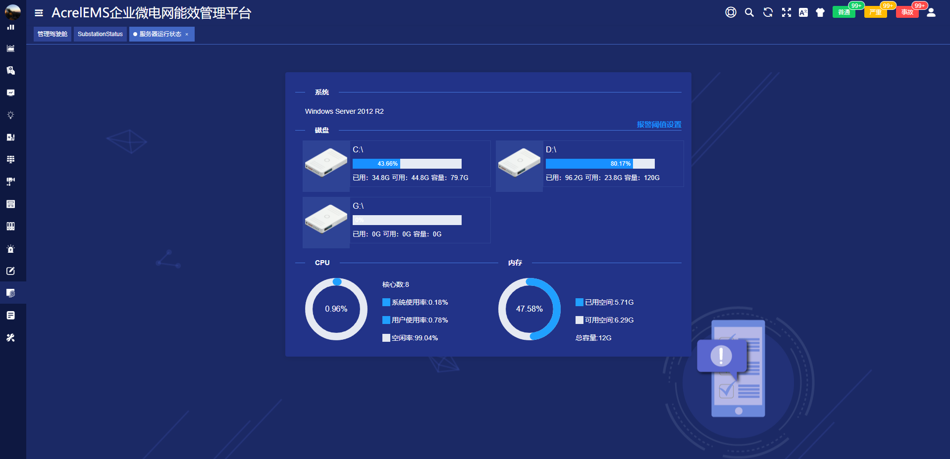 平臺接收到報警信息后,可通過短信或者APP推送報警信息,相關報警閾值可根據要求靈活設置,并對報警設置不同級別。