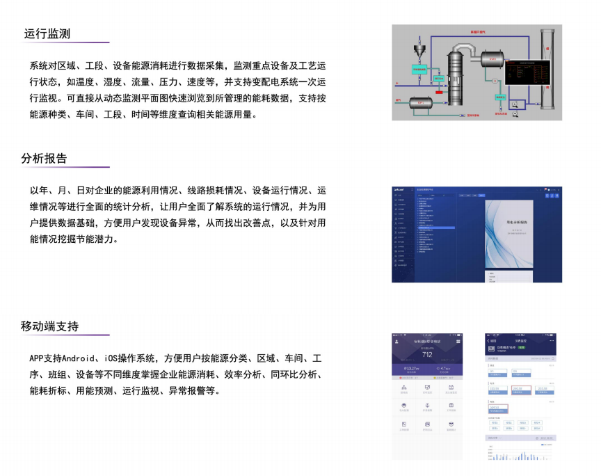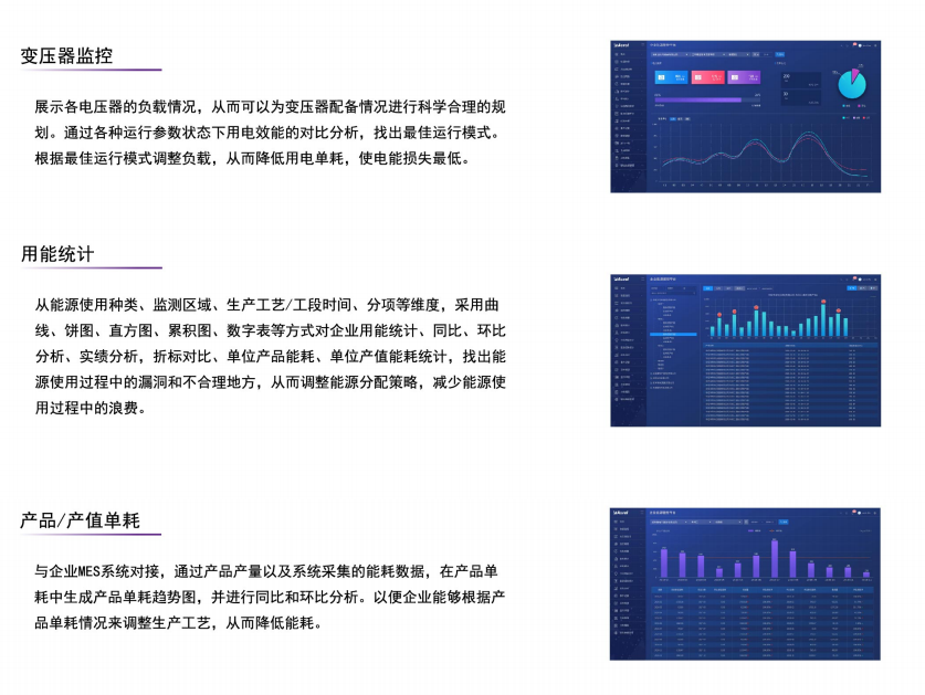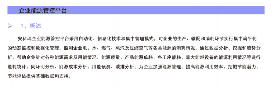 安科瑞企業能源管控平臺采用自動化、信息化技術和集中管理模式,對企業的生產、輸配和消耗環節實行集中扁平化的動態監控和數據化管理,監測企業電、水、燃氣、蒸汽及壓縮空氣等各類能源的消耗情況,通過數據分析,、挖掘和趨勢分析,幫助企業針對各種能源需求及用能情況、能源質量、產品能源單耗、各工序能耗、重大能耗設備的能源利用情況等進行能耗統計、同環比分析、能源成本分析、用能預測、碳排分析,為企業加強能源管理,提高能源利用效率、挖掘節能潛力、節能評估提供基礎數據和支持。
